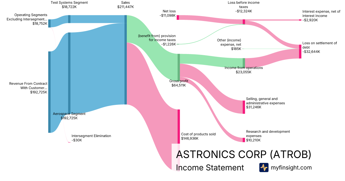 For the quarter ending 2025-09-27, ATROB made $211,447K in revenue. -$11,098K in net income. Net profit margin of -5.25%.