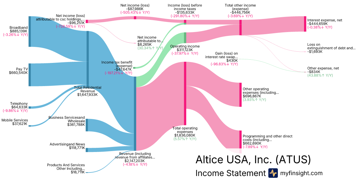 For the quarter ending 2025-06-30, ATUS made $2,147,203K in revenue. -$96,251K in net income. Net profit margin of -4.48%.