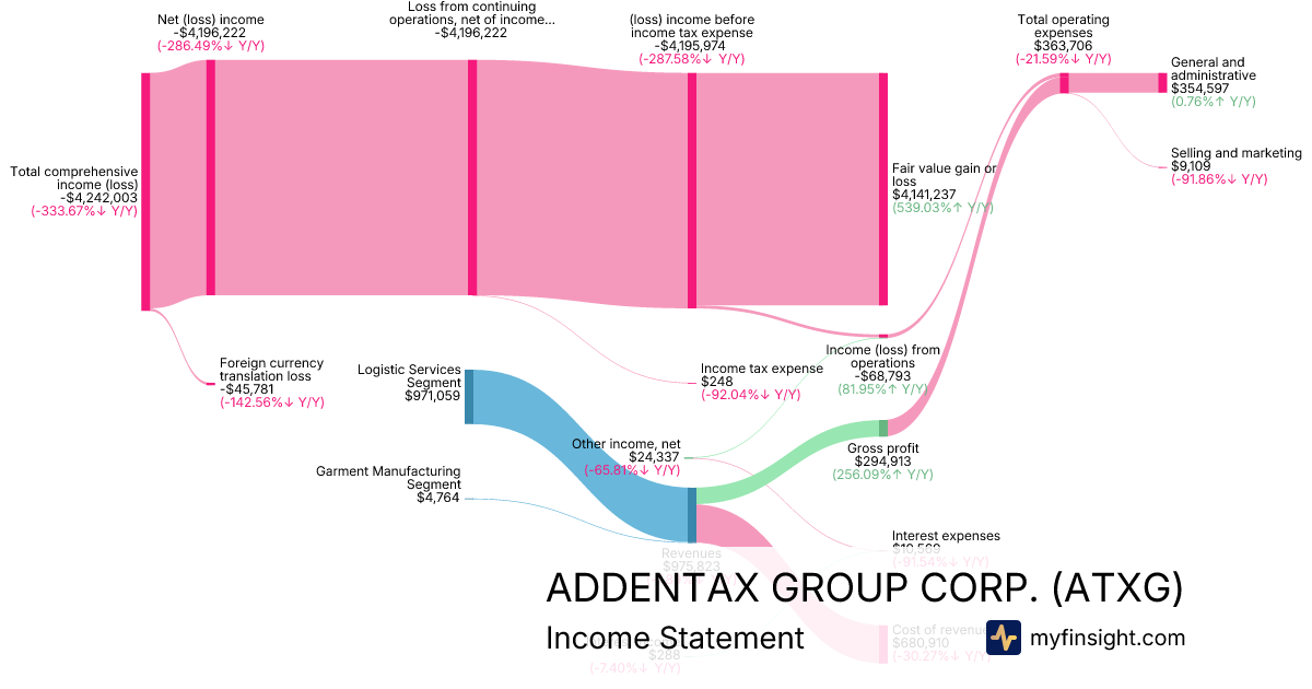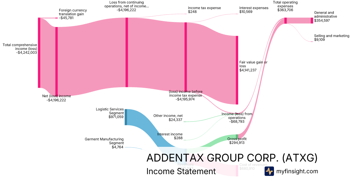 For the quarter ending 2025-12-31, ATXG made $975,823 in revenue. -$4,242,003 in net income. Net profit margin of -434.71%.