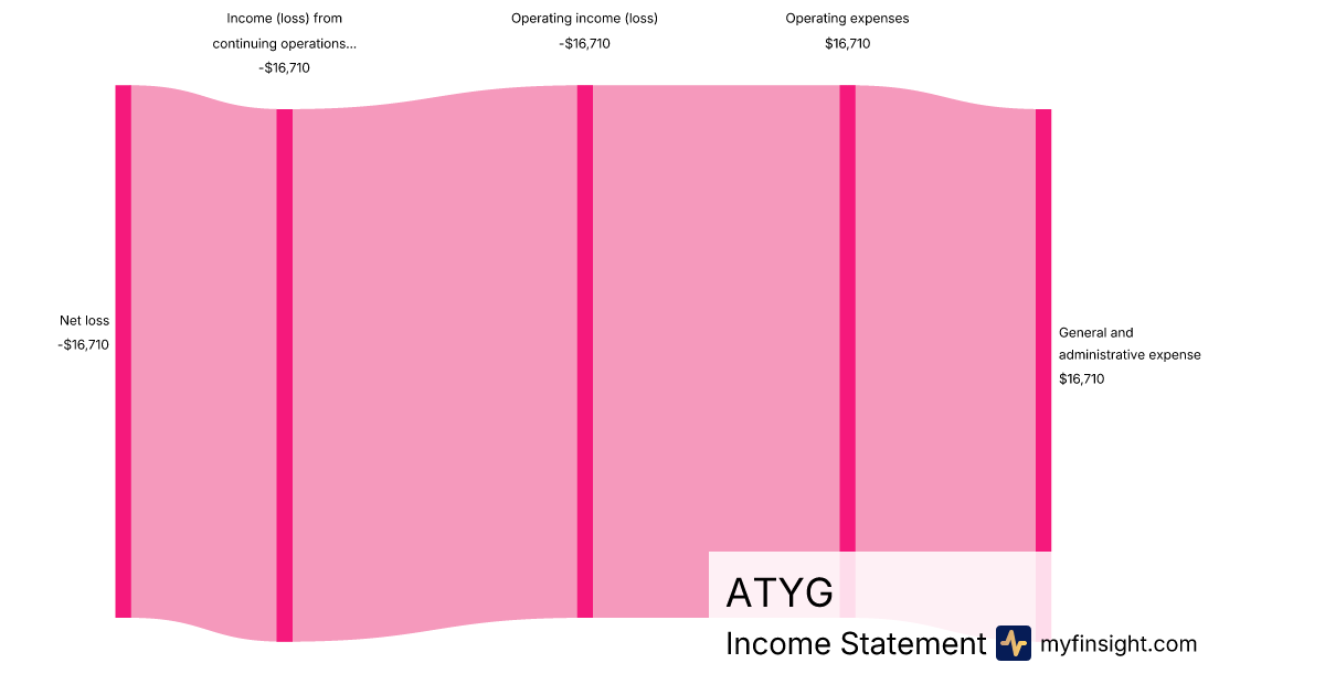 For the quarter ending 2024-09-30, ATYG made $16,710 in revenue. -$16,710 in net income. Net profit margin of -100.00%.