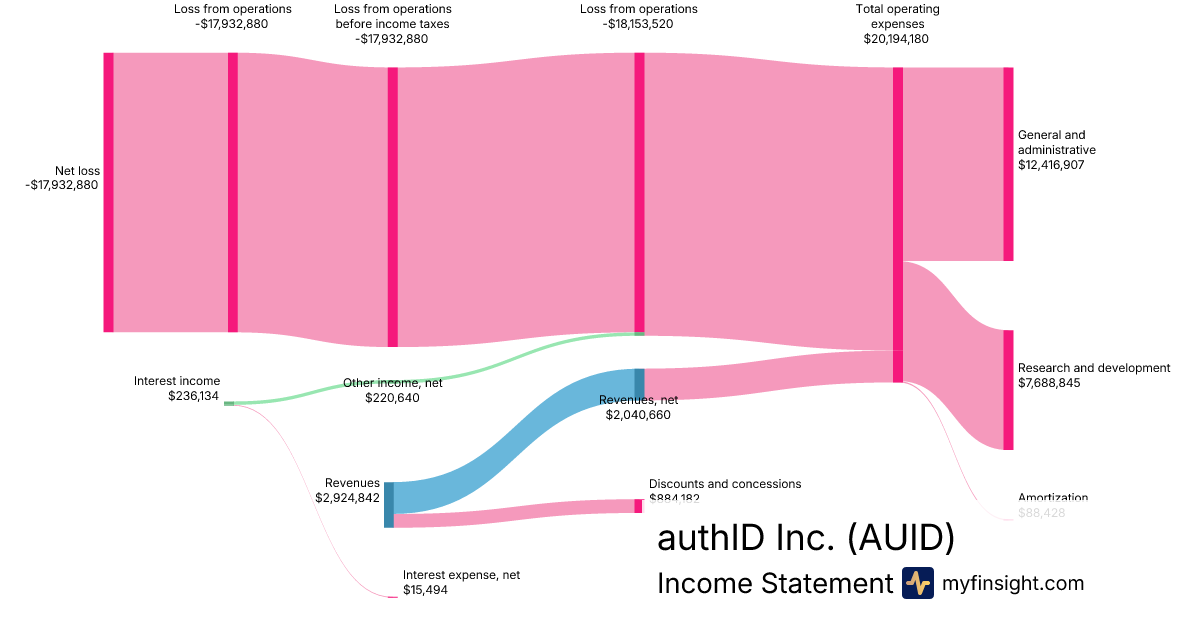 For the year ending 2025-12-31, AUID made $2,040,660 in revenue. -$17,932,880 in net income. Net profit margin of -878.78%.
