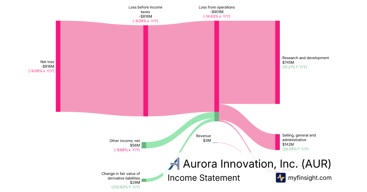 For the year ending 2025-12-31, AUR made $3M in revenue. -$816M in net income. Net profit margin of -27200.00%.