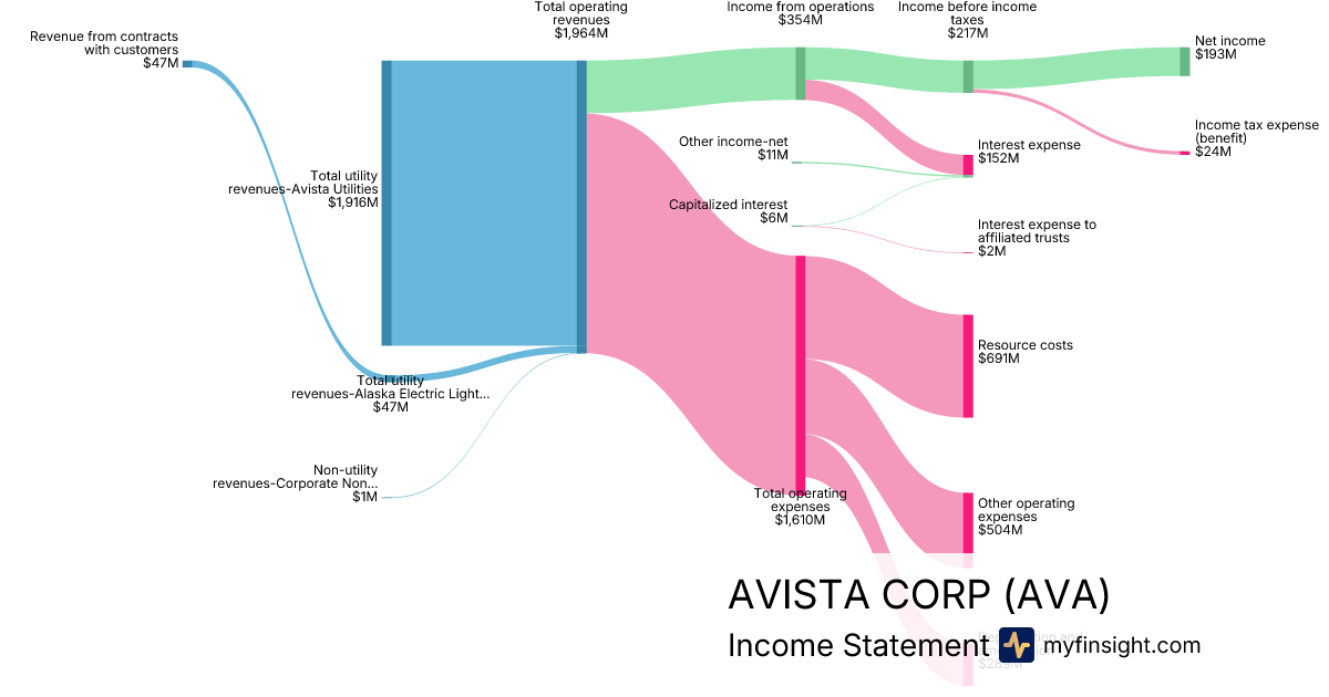 For the year ending 2025-12-31, AVA made $1,964M in revenue. $193M in net income. Net profit margin of 9.83%.