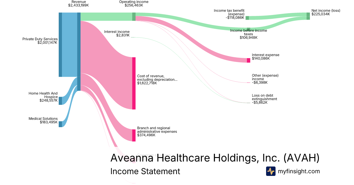 For the year ending 2026-01-03, AVAH made $2,433,199K in revenue. $225,034K in net income. Net profit margin of 9.25%.