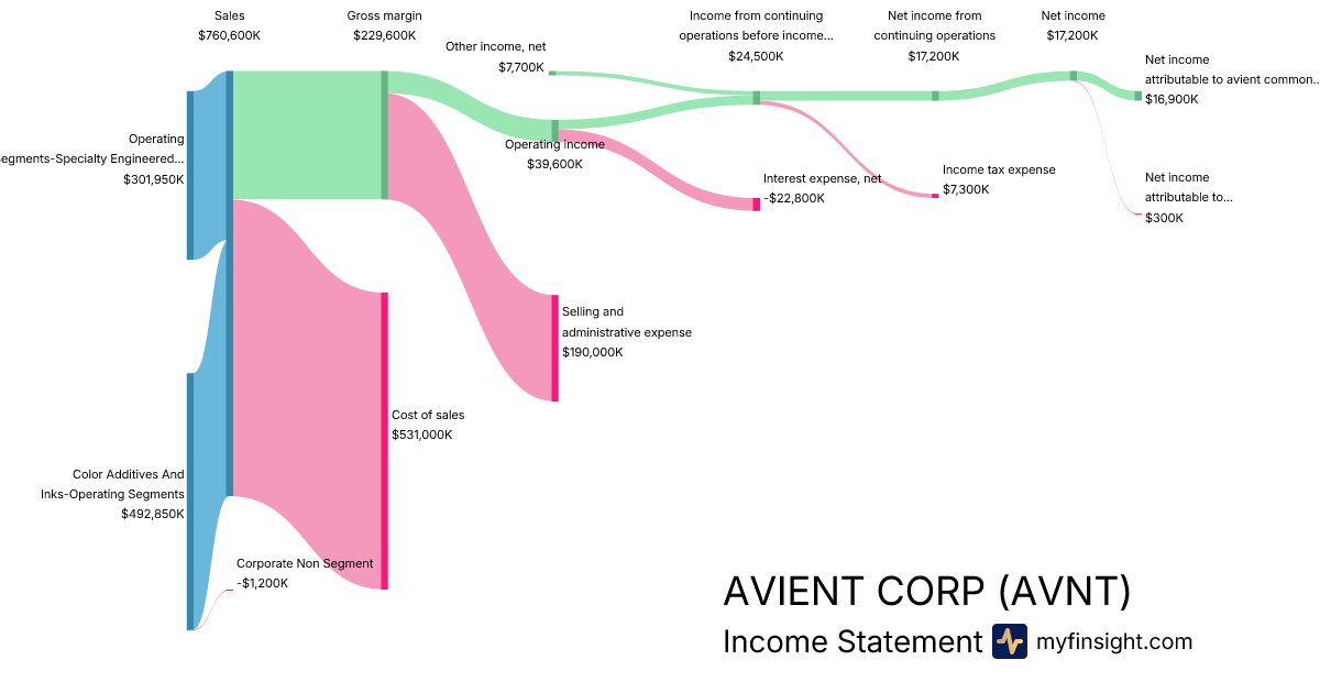 For the year ending 2025-12-31, AVNT made $3,260,200K in revenue. $81,900K in net income. Net profit margin of 2.51%.