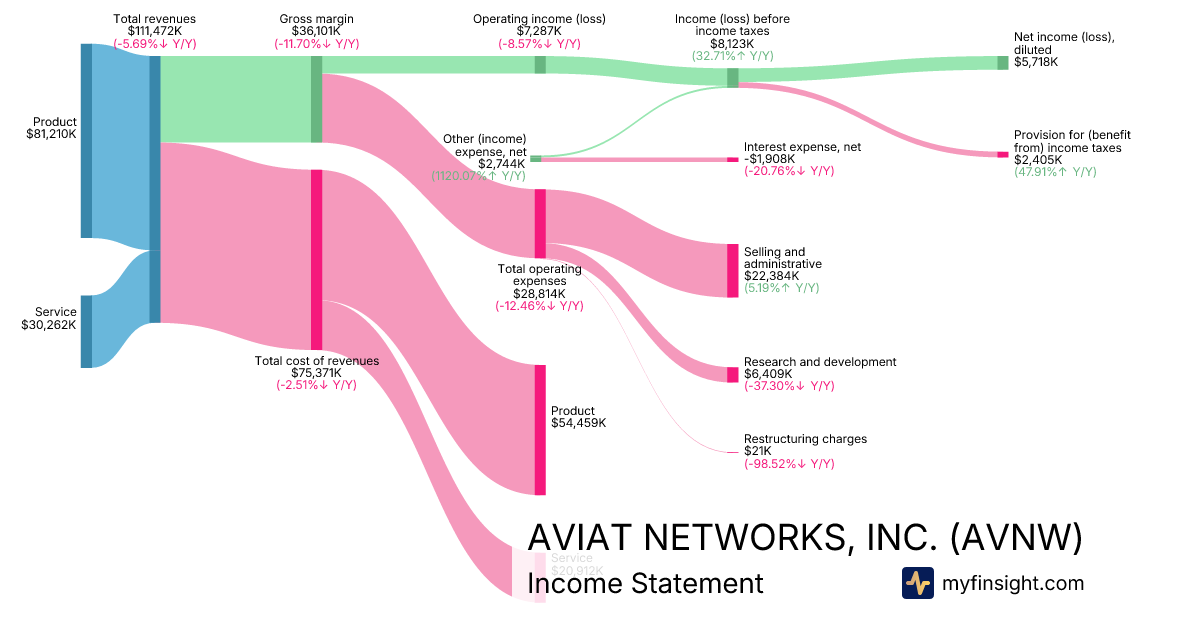 For the quarter ending 2025-12-26, AVNW made $111,472K in revenue. $5,718K in net income. Net profit margin of 5.13%.