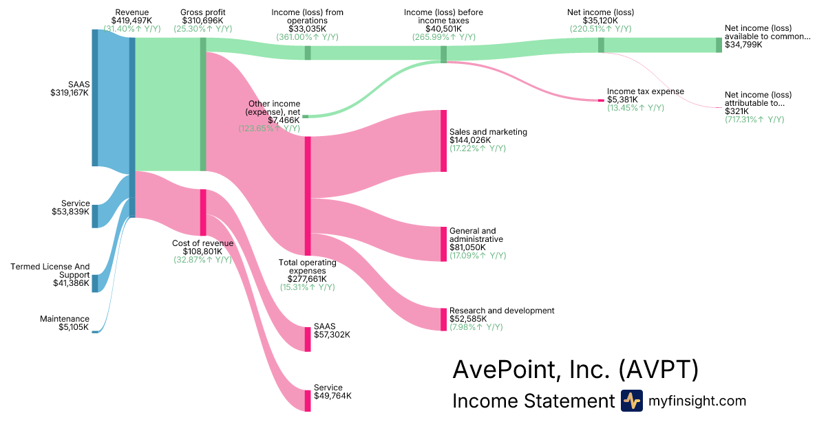 For the year ending 2025-12-31, AVPT made $419,497K in revenue. $34,799K in net income. Net profit margin of 8.30%.