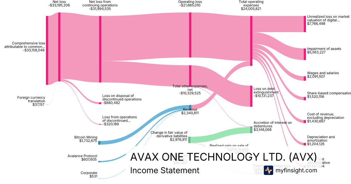 For the year ending 2025-12-31, AVX made $2,340,811 in revenue. -$33,158,049 in net income. Net profit margin of -1416.52%.