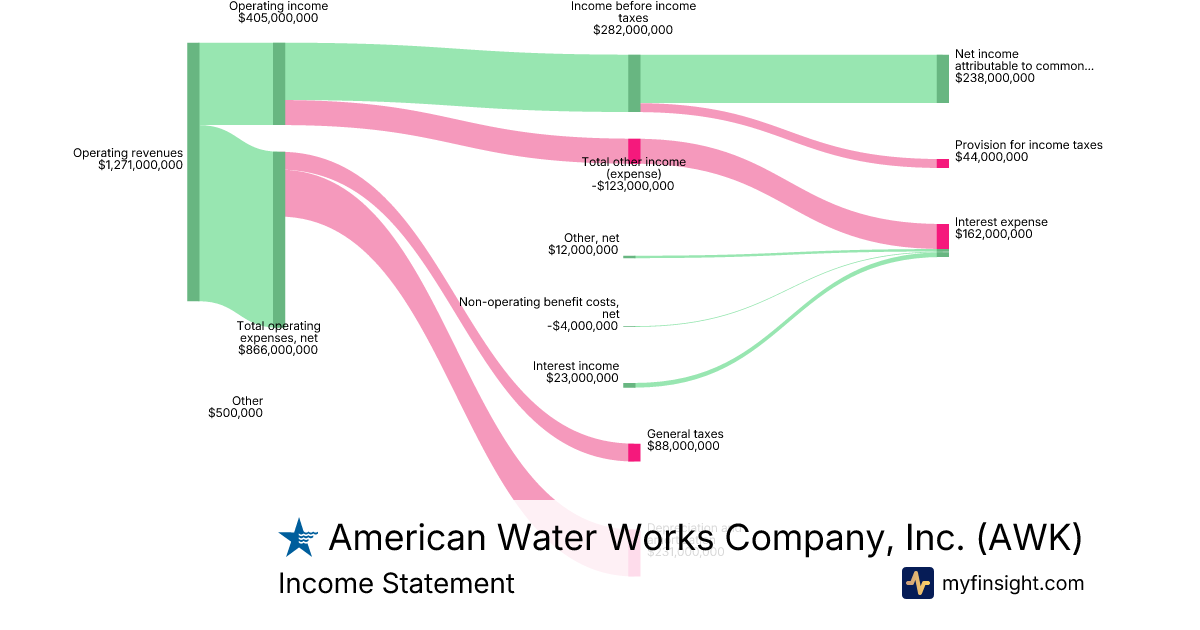 For the year ending 2025-12-31, AWK made $8,527M in revenue. $1,111M in net income. Net profit margin of 13.03%.