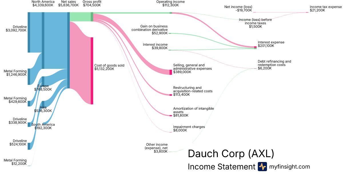 For the year ending 2025-12-31, AXL made $5,836,700K in revenue. -$19,700K in net income. Net profit margin of -0.34%.