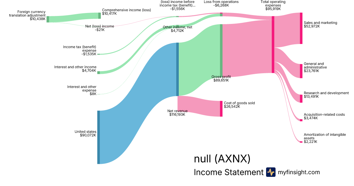 For the quarter ending 2024-09-30, AXNX made $116,193K in revenue. $10,417K in net income. Net profit margin of 8.97%.