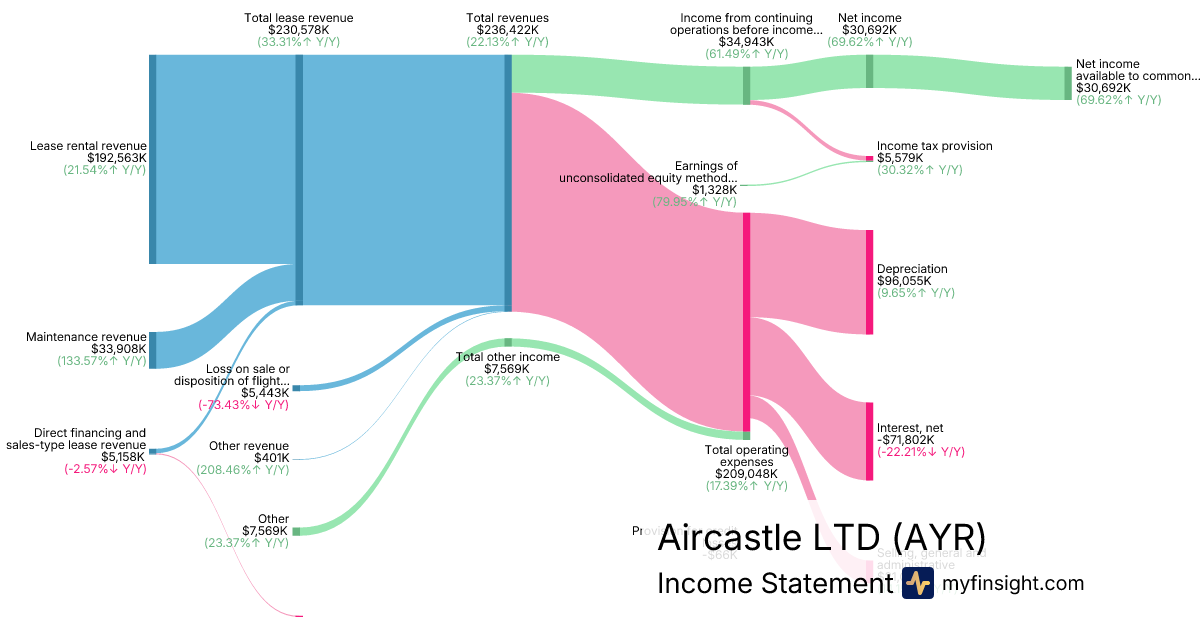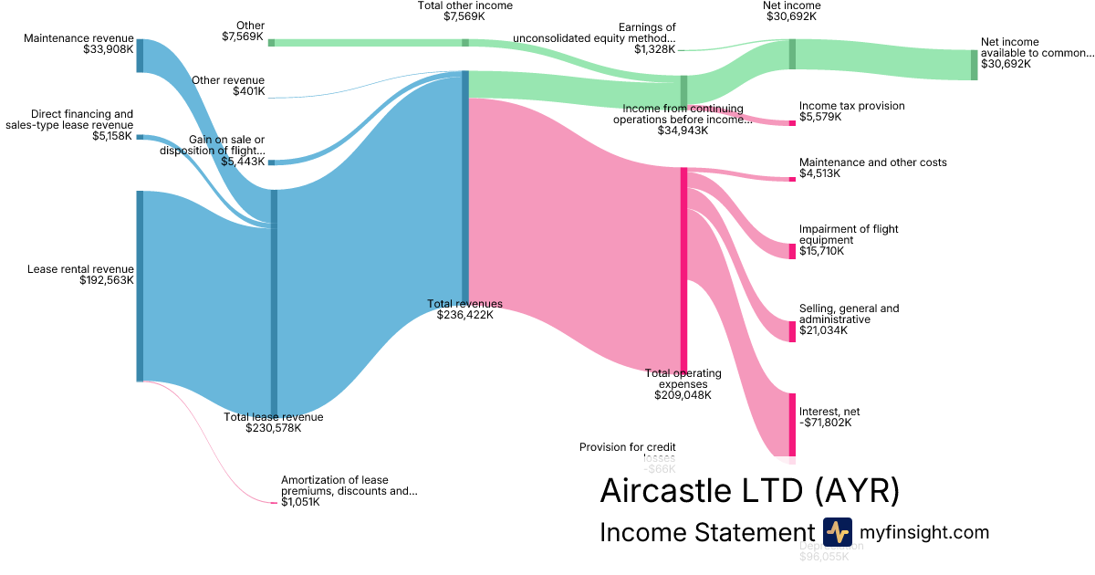 For the quarter ending 2025-11-30, AYR made $236,422K in revenue. $30,692K in net income. Net profit margin of 12.98%.
