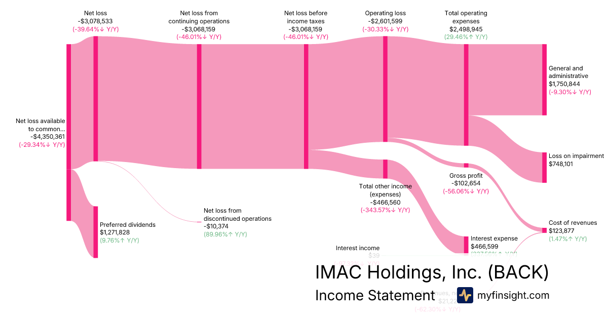For the quarter ending 2025-09-30, BACK made $21,223 in revenue. -$4,350,361 in net income. Net profit margin of -20498.33%.
