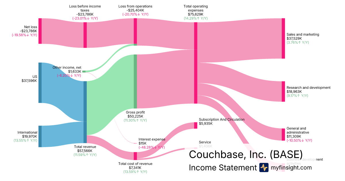 For the quarter ending 2025-07-31, BASE made $57,566K in revenue. -$23,786K in net income. Net profit margin of -41.32%.