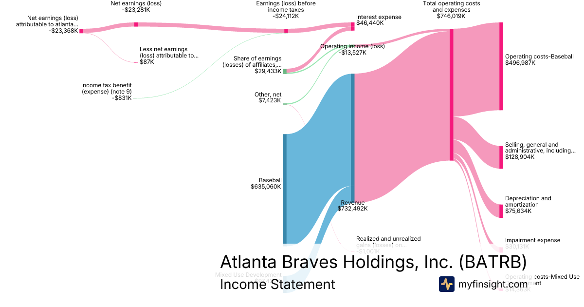 For the year ending 2025-12-31, BATRB made $732,492K in revenue. -$23,368K in net income. Net profit margin of -3.19%.