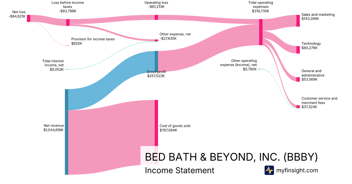 For the year ending 2025-12-31, BBBY made $1,044,616K in revenue. -$84,621K in net income. Net profit margin of -8.10%.
