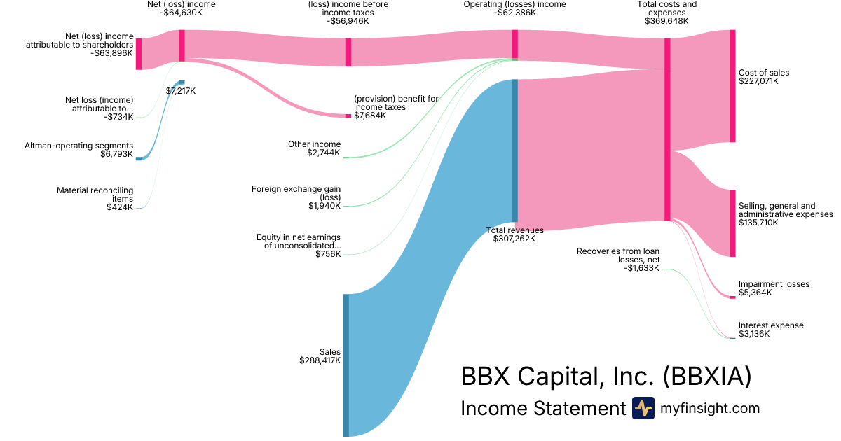 For the year ending 2024-12-31, BBXIA made $307,262K in revenue. -$63,896K in net income. Net profit margin of -20.80%.