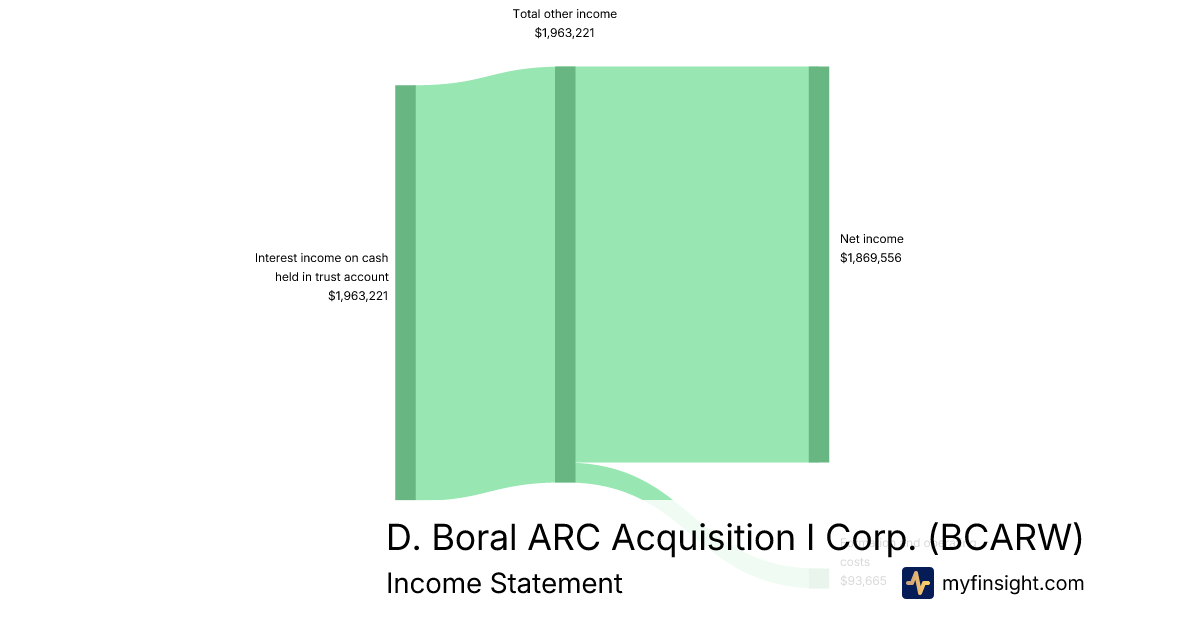 For the quarter ending 2025-09-30, BCARW made $1,963,221 in revenue. $1,869,556 in net income. Net profit margin of 95.23%.