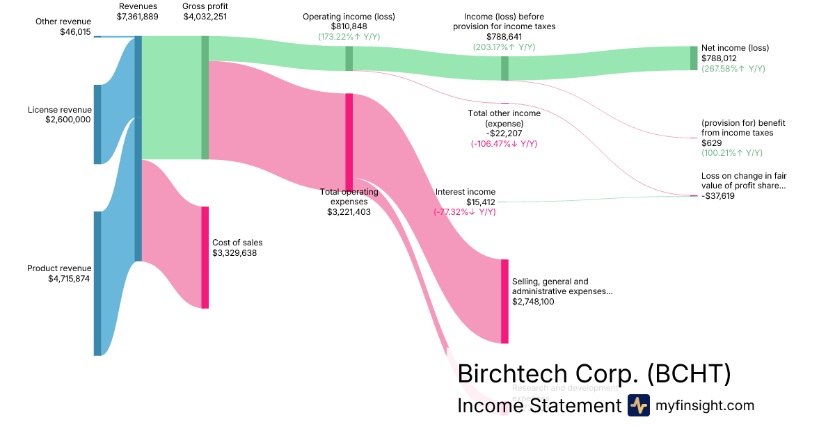 For the quarter ending 2025-09-30, BCHT made $7,361,889 in revenue. $788,012 in net income. Net profit margin of 10.70%.