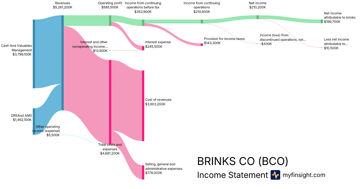 For the year ending 2025-12-31, BCO made $5,261,200K in revenue. $199,700K in net income. Net profit margin of 3.80%.
