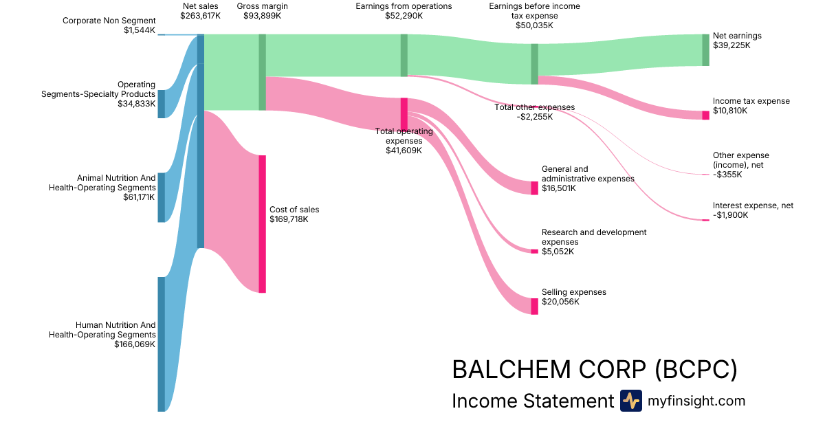 For the year ending 2025-12-31, BCPC made $1,037,161K in revenue. $154,845K in net income. Net profit margin of 14.93%.