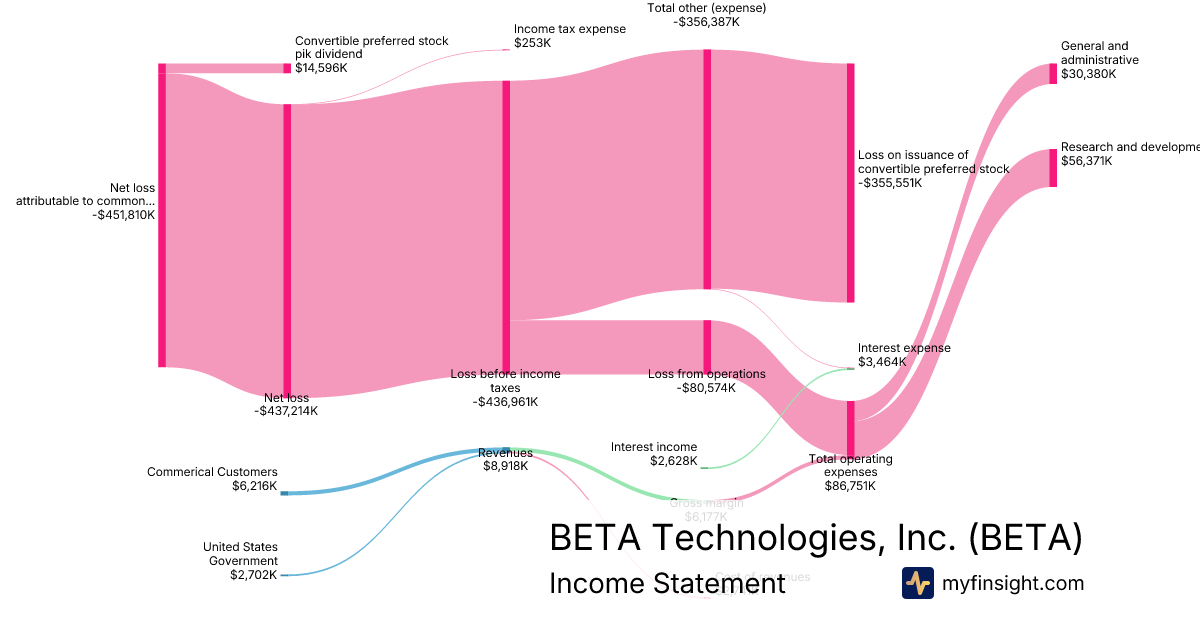For the quarter ending 2025-09-30, BETA made $8,918K in revenue. -$451,810K in net income. Net profit margin of -5066.27%.