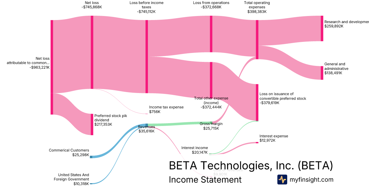 For the year ending 2025-12-31, BETA made $35,616K in revenue. -$963,221K in net income. Net profit margin of -2704.46%.