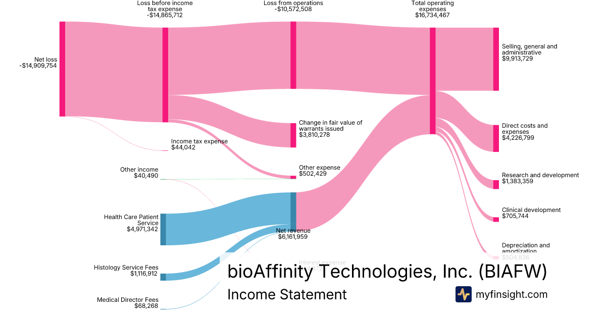 For the year ending 2025-12-31, BIAFW made $6,161,959 in revenue. -$14,909,754 in net income. Net profit margin of -241.96%.