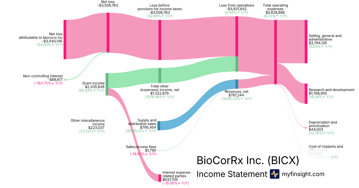 For the year ending 2025-12-31, BICX made $797,244 in revenue. -$3,440,146 in net income. Net profit margin of -431.50%.