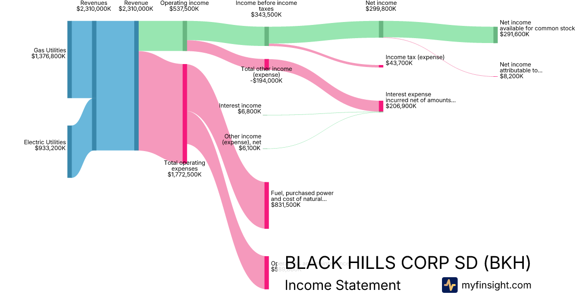 For the year ending 2025-12-31, BKH made $2,310,000K in revenue. $291,600K in net income. Net profit margin of 12.62%.