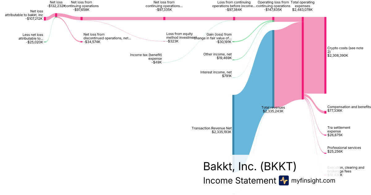 For the year ending 2025-12-31, BKKT made $2,335,243K in revenue. -$107,212K in net income. Net profit margin of -4.59%.