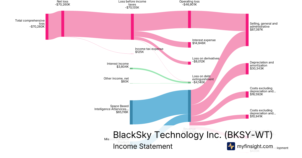 For the year ending 2025-12-31, BKSY-WT made $106,575K in revenue. -$70,260K in net income. Net profit margin of -65.93%.