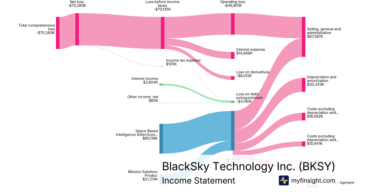 For the year ending 2025-12-31, BKSY made $106,575K in revenue. -$70,260K in net income. Net profit margin of -65.93%.