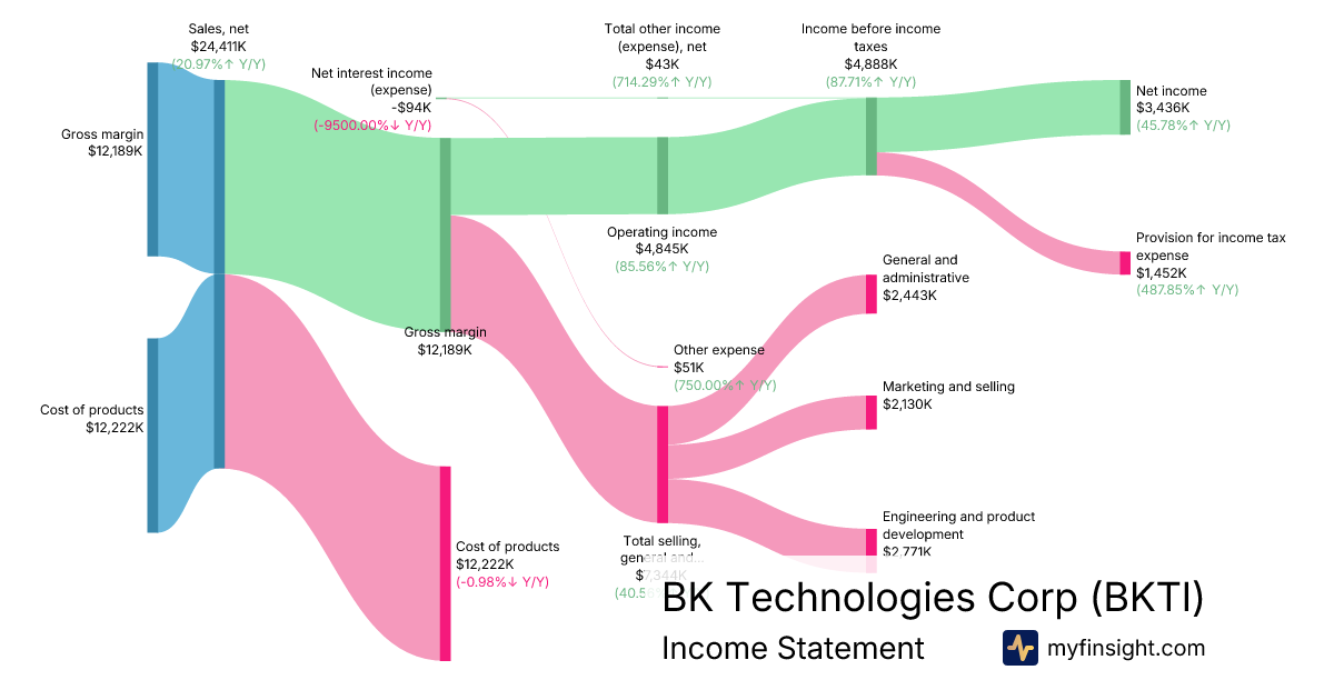 For the quarter ending 2025-09-30, BKTI made $24,411,000 in revenue. $3,436,000 in net income. Net profit margin of 14.08%.