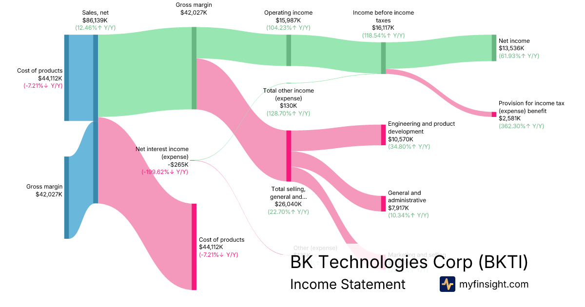 For the year ending 2025-12-31, BKTI made $86,139K in revenue. $13,536K in net income. Net profit margin of 15.71%.
