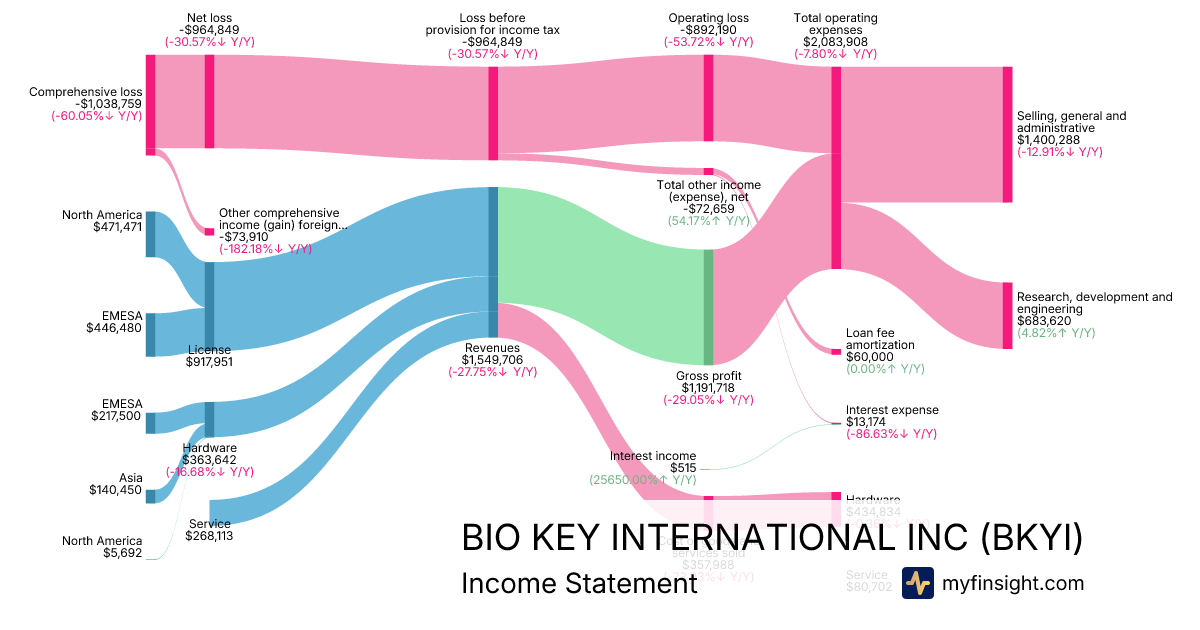 For the quarter ending 2025-09-30, BKYI made $1,549,706 in revenue. -$1,038,759 in net income. Net profit margin of -67.03%.