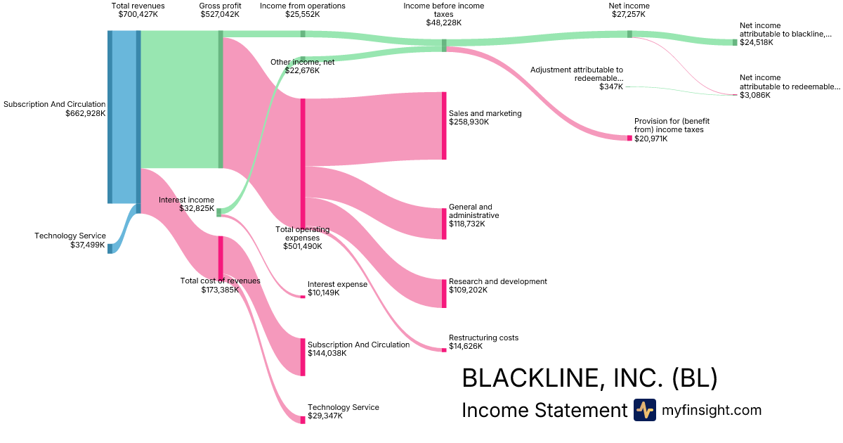 For the year ending 2025-12-31, BL made $700,427K in revenue. $24,518K in net income. Net profit margin of 3.50%.