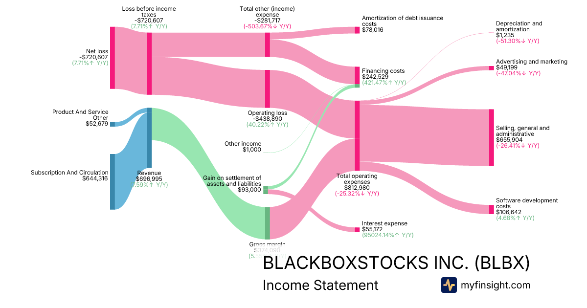 For the quarter ending 2025-09-30, BLBX made $696,995 in revenue. -$720,607 in net income. Net profit margin of -103.39%.