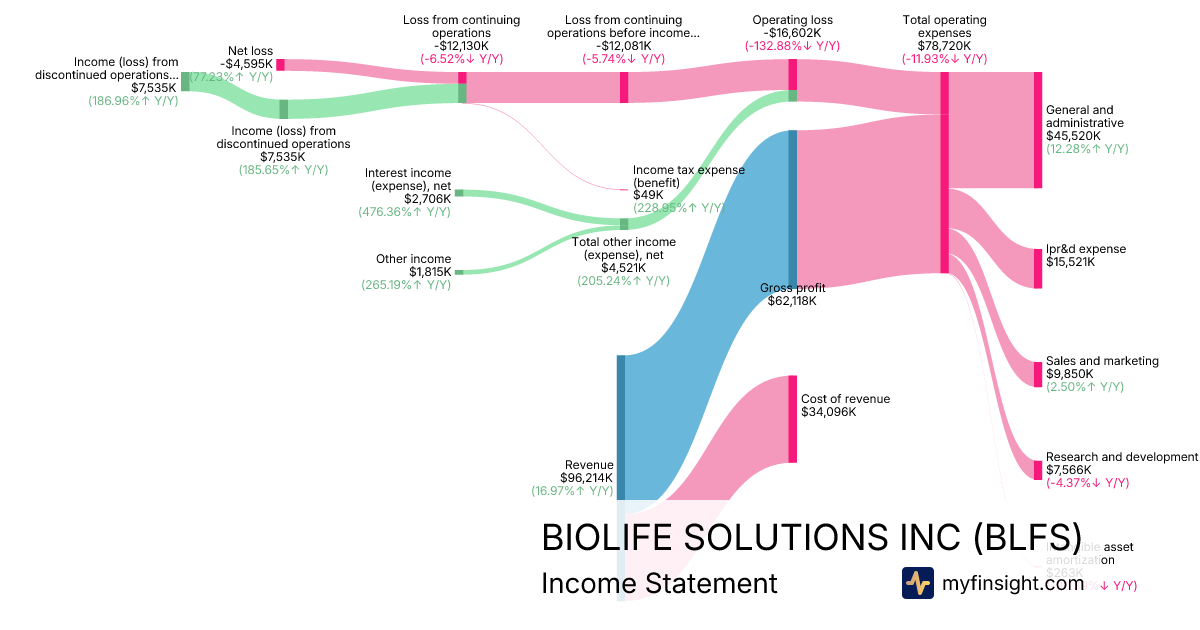For the year ending 2025-12-31, BLFS made $96,214K in revenue. -$4,595K in net income. Net profit margin of -4.78%.