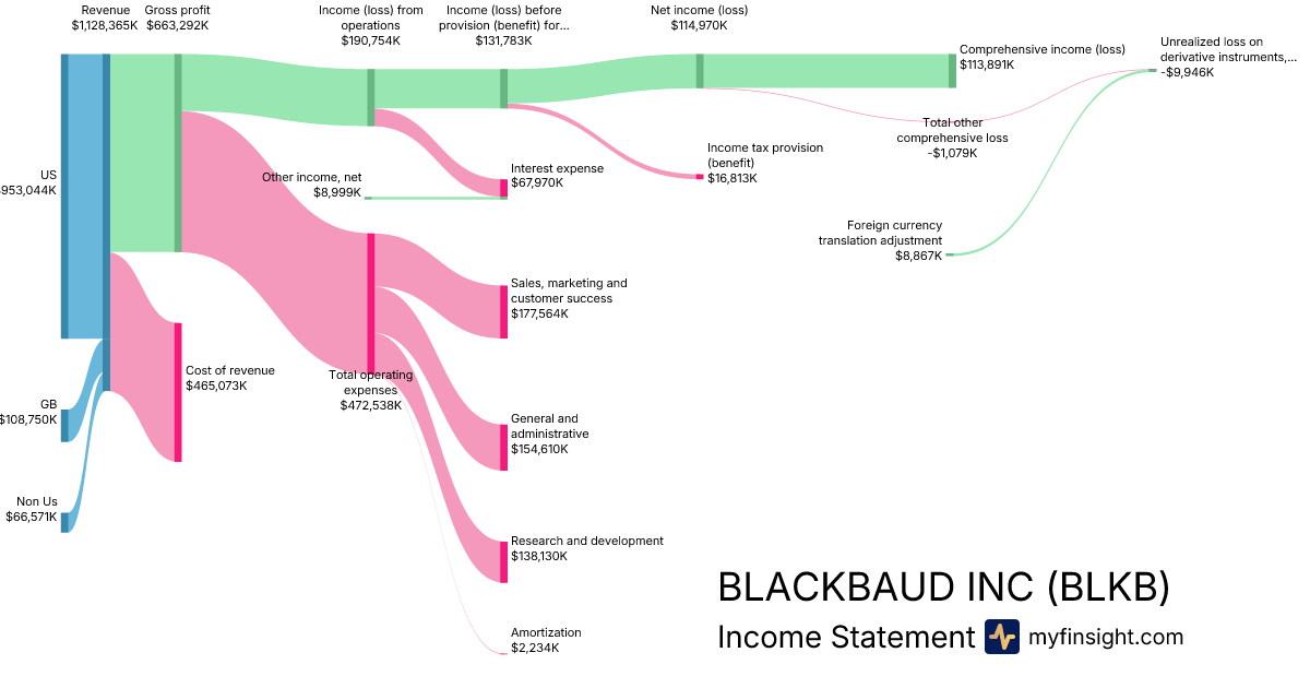 For the year ending 2025-12-31, BLKB made $1,128,365K in revenue. $113,891K in net income. Net profit margin of 10.09%.