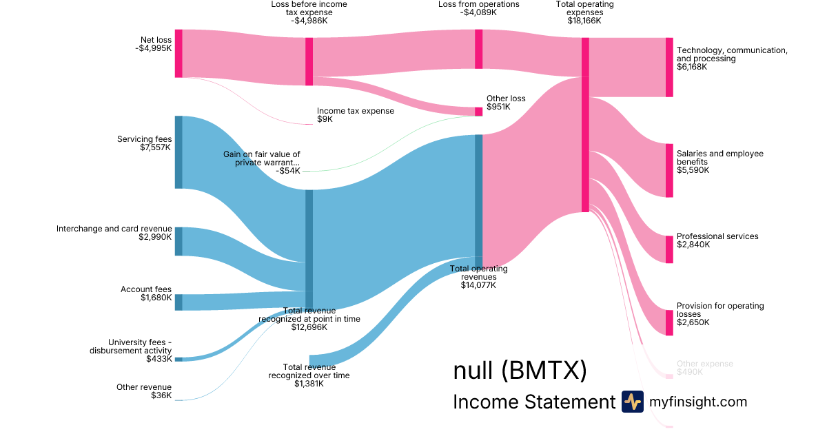 For the quarter ending 2024-09-30, BMTX made $14,077K in revenue. -$4,995K in net income. Net profit margin of -35.48%.
