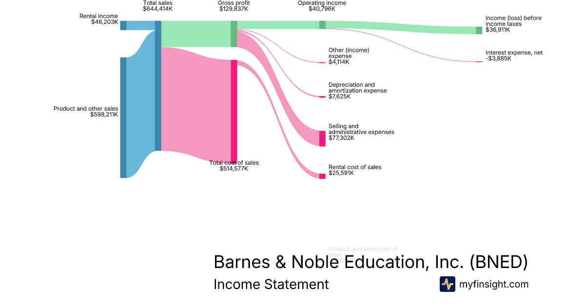 For the quarter ending 2025-11-01, BNED made $644,414K in revenue. $36,911K in net income. Net profit margin of 5.73%.