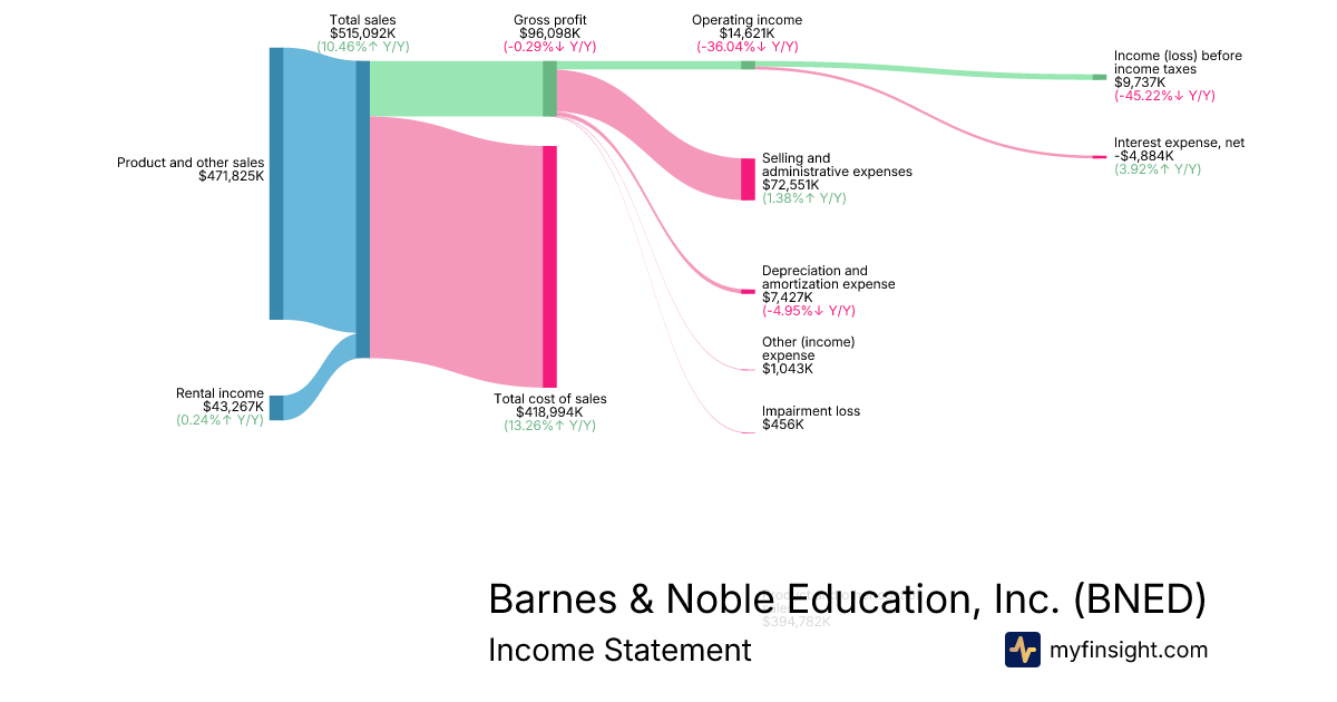 For the quarter ending 2026-01-31, BNED made $515,092K in revenue. $9,737K in net income. Net profit margin of 1.89%.
