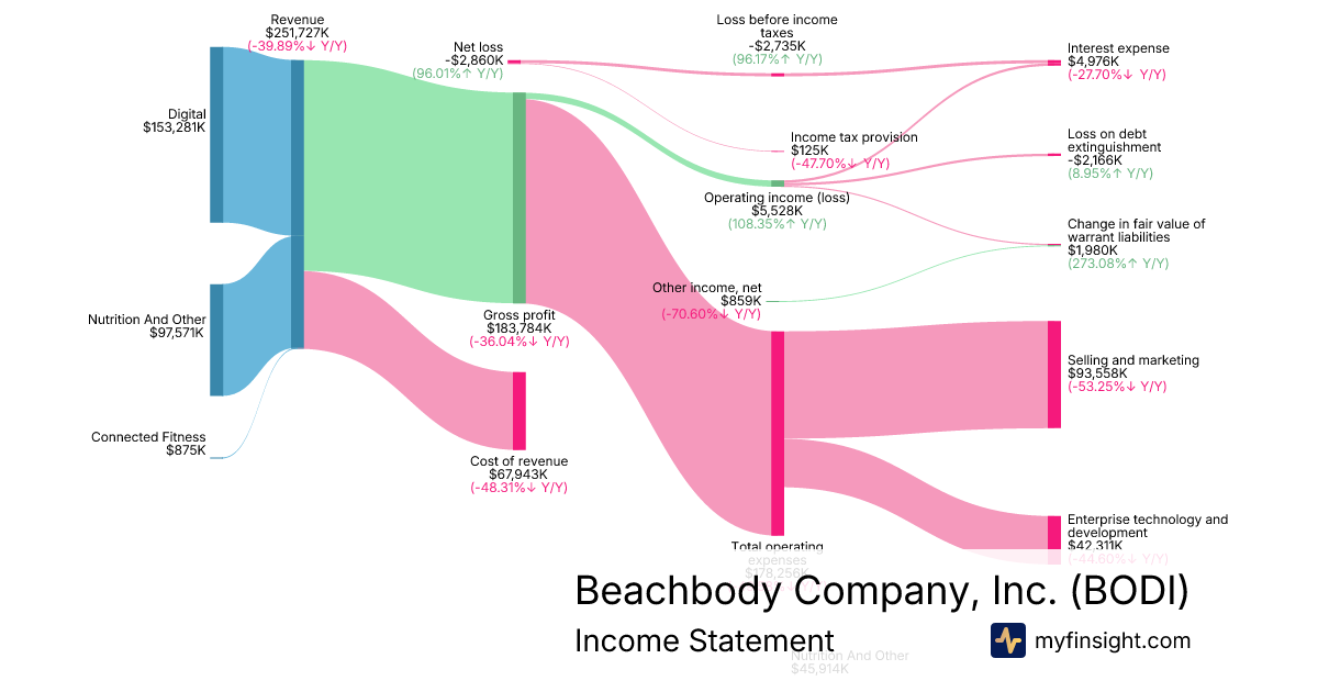 For the year ending 2025-12-31, BODI made $251,727K in revenue. -$2,860K in net income. Net profit margin of -1.14%.