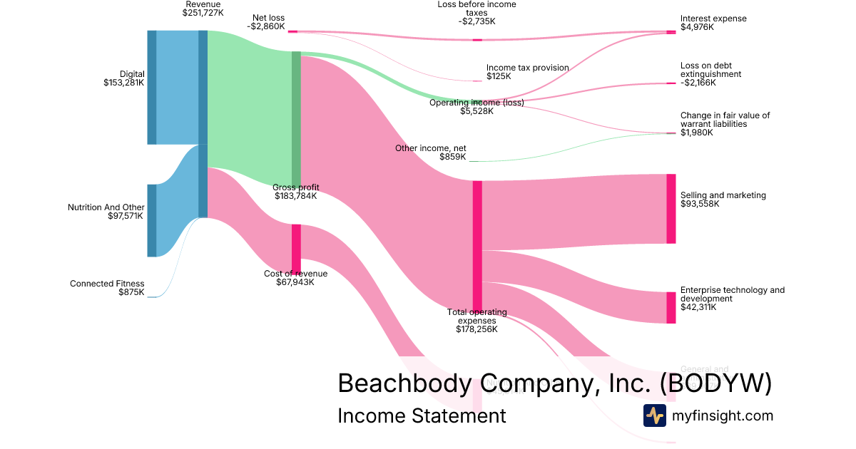 For the year ending 2025-12-31, BODYW made $251,727K in revenue. -$2,860K in net income. Net profit margin of -1.14%.