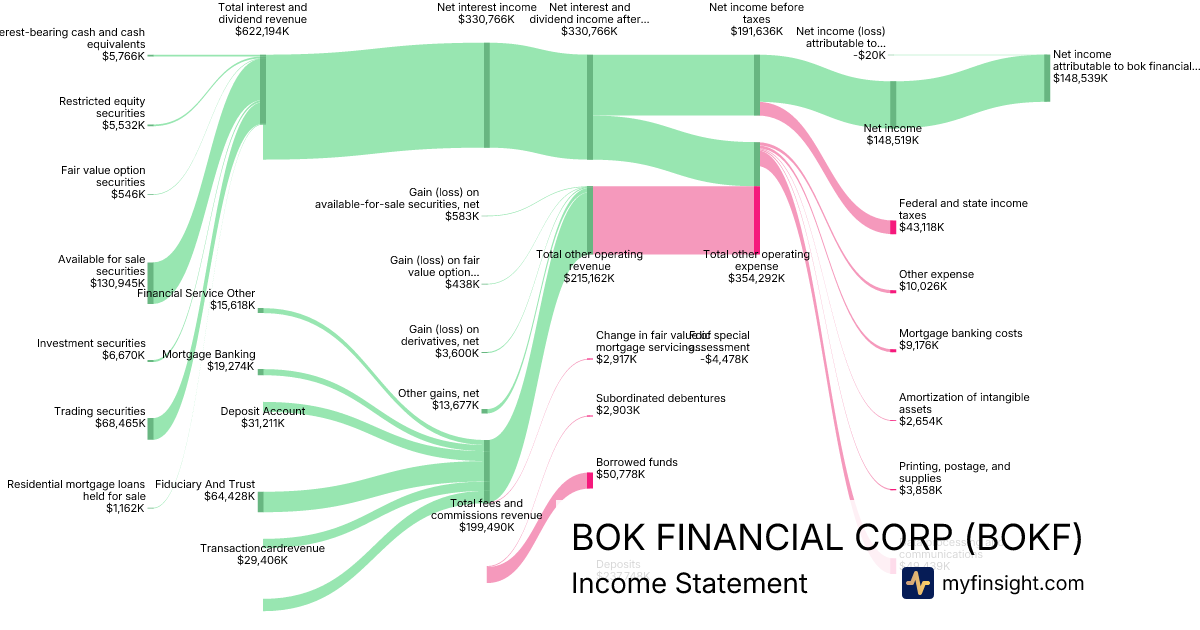 For the year ending 2025-12-31, BOKF made $6,040,081K in revenue. $577,990K in net income. Net profit margin of 9.57%.