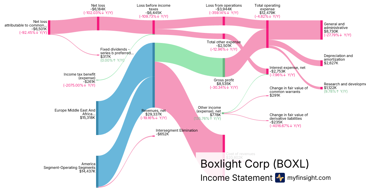 For the quarter ending 2025-09-30, BOXL made $29,337K in revenue. -$6,501K in net income. Net profit margin of -22.16%.