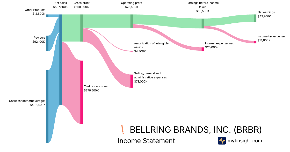 For the quarter ending 2025-12-31, BRBR made $537,300K in revenue. $43,700K in net income. Net profit margin of 8.13%.