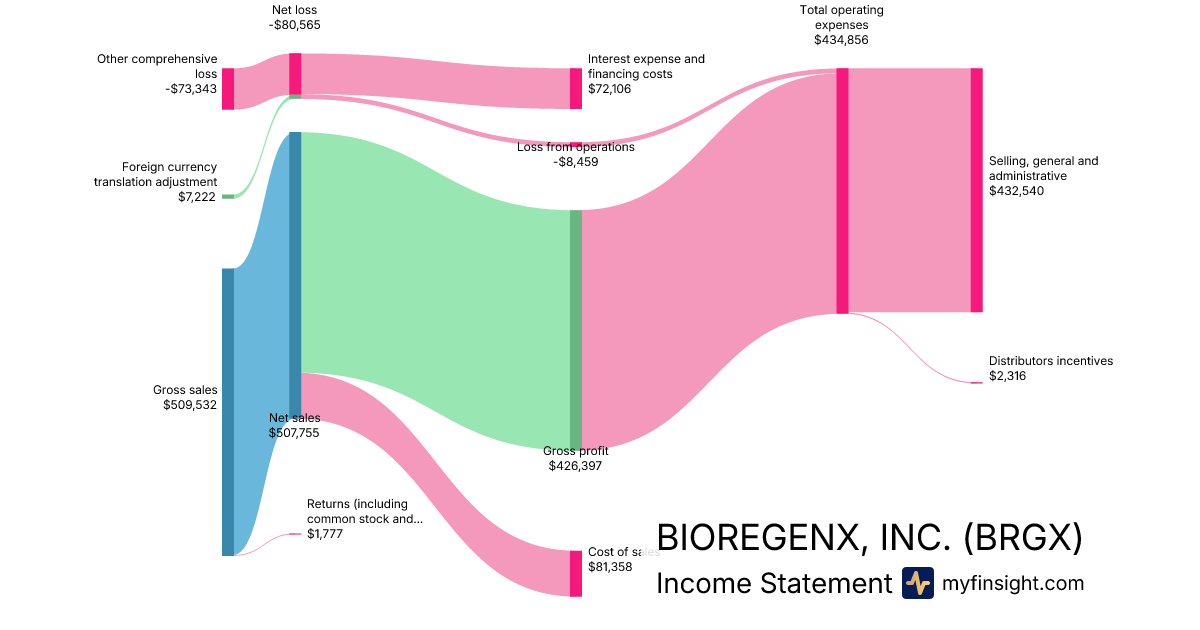 For the quarter ending 2025-09-30, BRGX made $507,755 in revenue. -$73,343 in net income. Net profit margin of -14.44%.