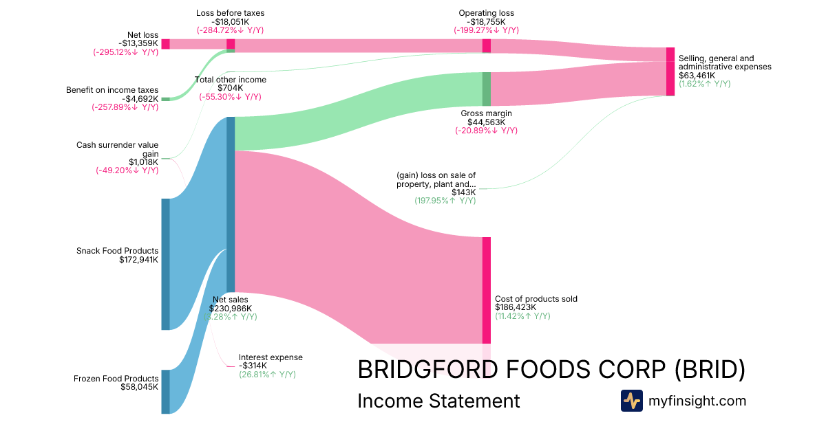 For the year ending 2025-10-31, BRID made $230,986K in revenue. -$13,359K in net income. Net profit margin of -5.78%.
